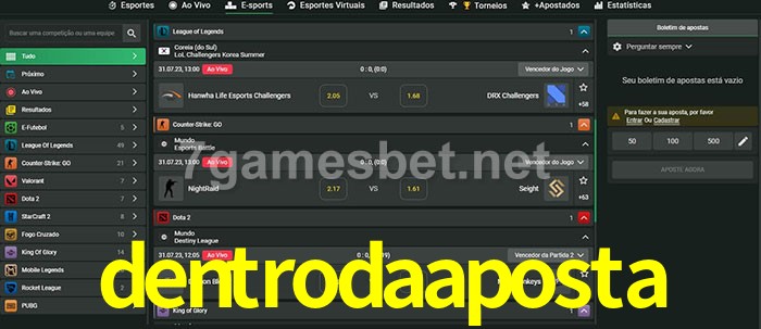 A aposta dentrodaaposta oferece aos jogadores a experiência mais conveniente de apostas em eSports!
